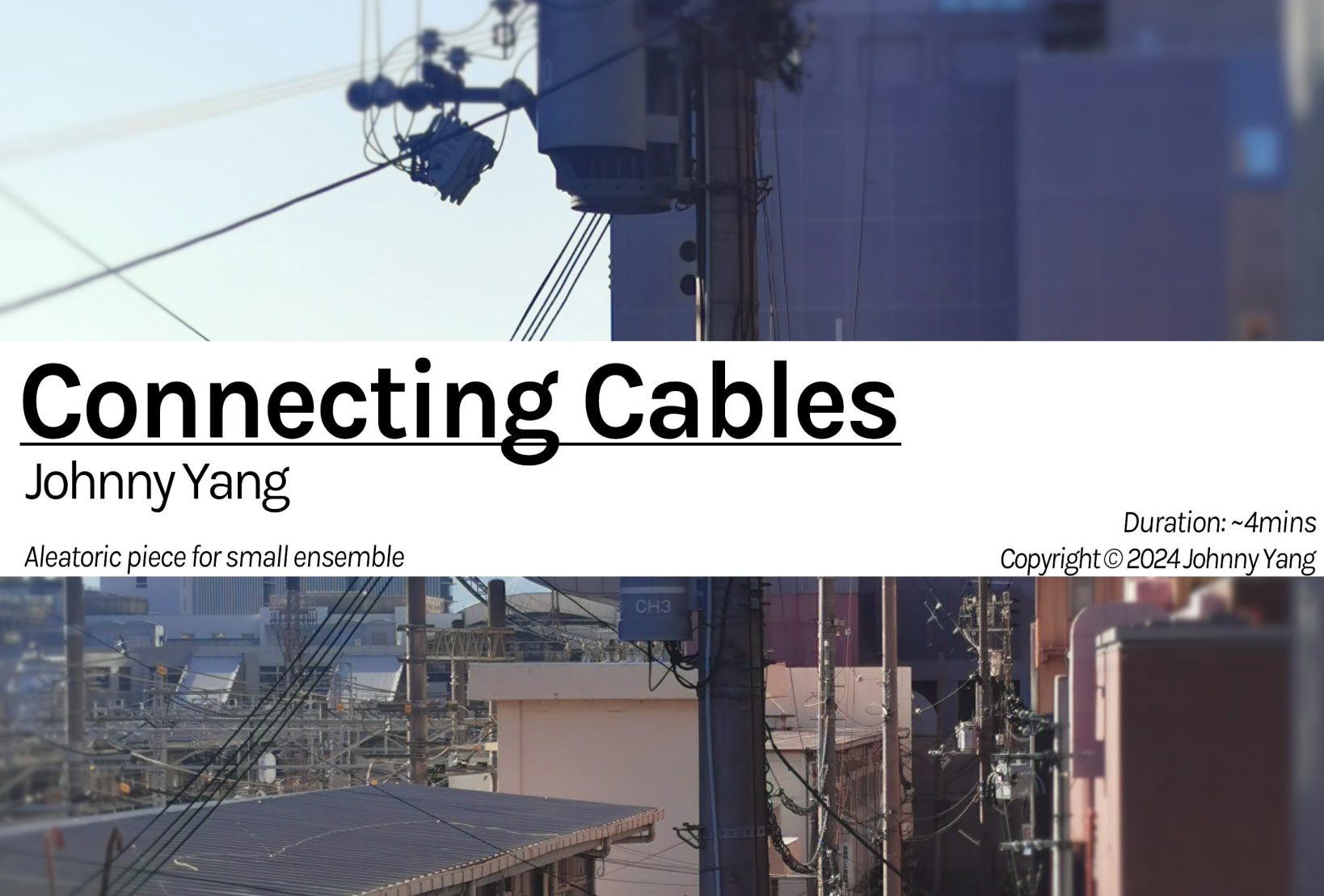 Connecting cables is a creative, interactive, aleatoric piece in which the performers may generate their own ways of reorganising the performance order of the written excerpts. The powerlines are seemingly never ending, and all conjoining, something that can be found in human behaviour's need for connection.